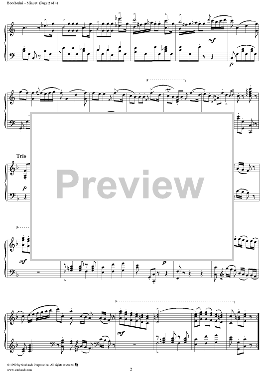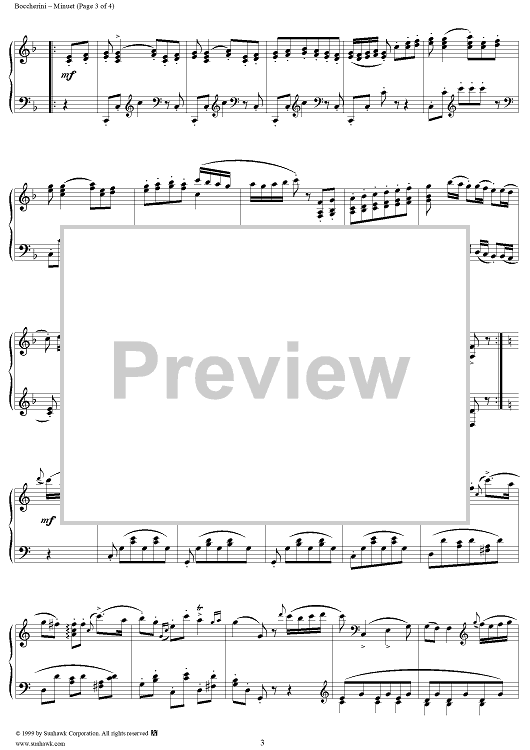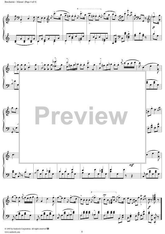 Digital Sheet Music for Minuet - from "String Quintet in E major Op. 11, No. 5" by Luigi Boccherini scored for Piano Solo; id:255295
