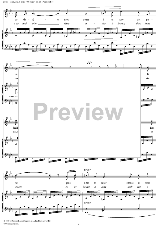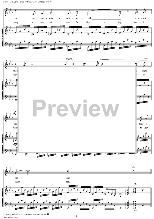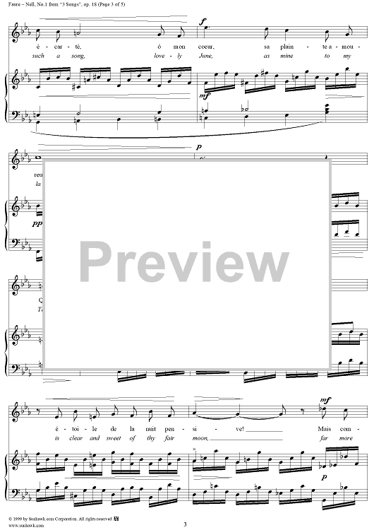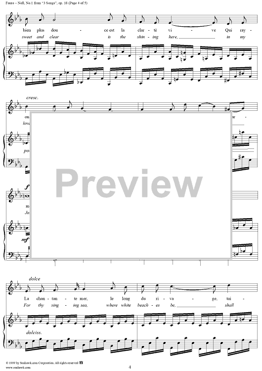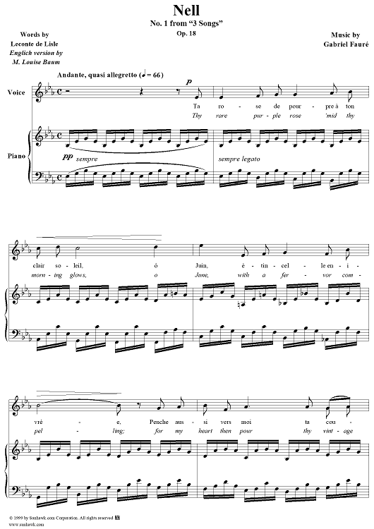 Digital Sheet Music for Nell - No. 1 from "3 Songs" op. 18 by Gabriel Fauré, Leconte de Lisle scored for Voice/Piano; id:271315