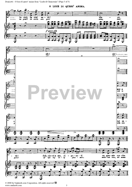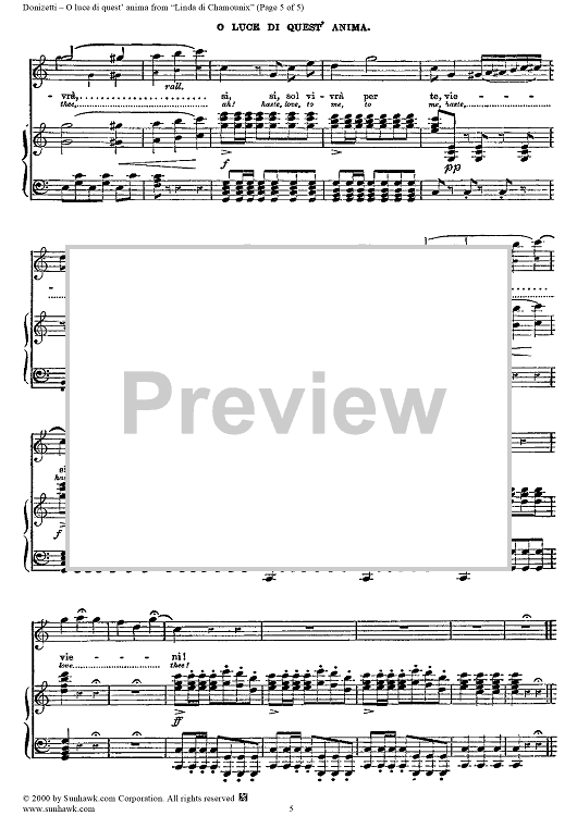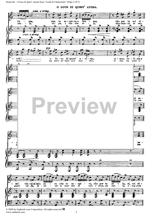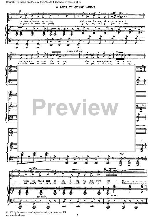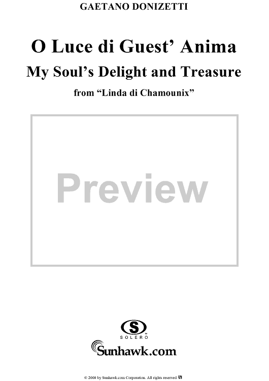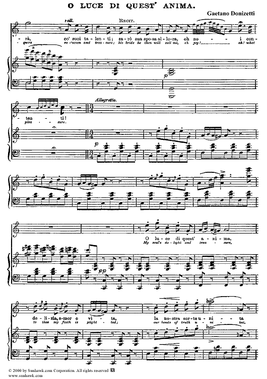 Digital Sheet Music for O luce di quest' anima by Gaetano Donizetti scored for Voice/Piano; id:254465