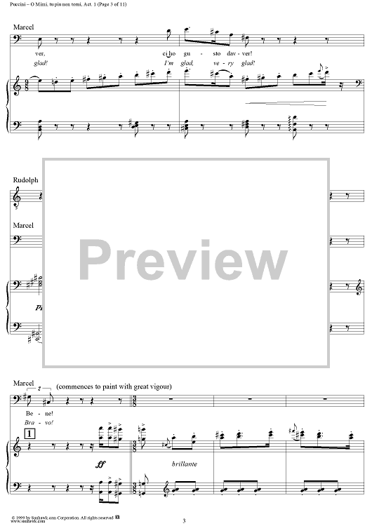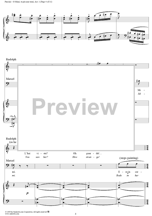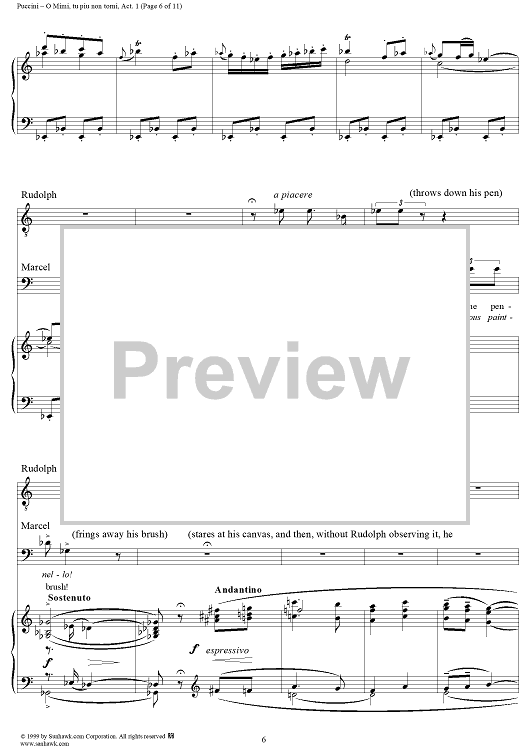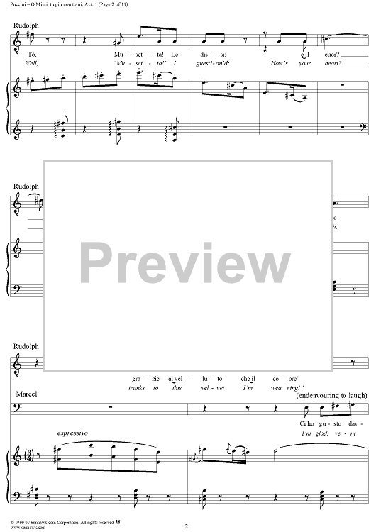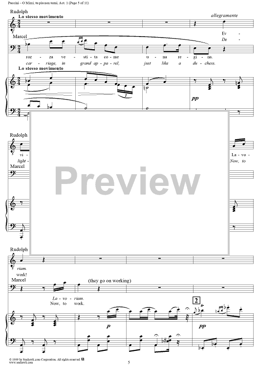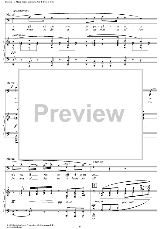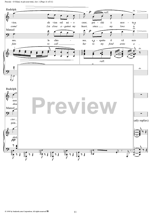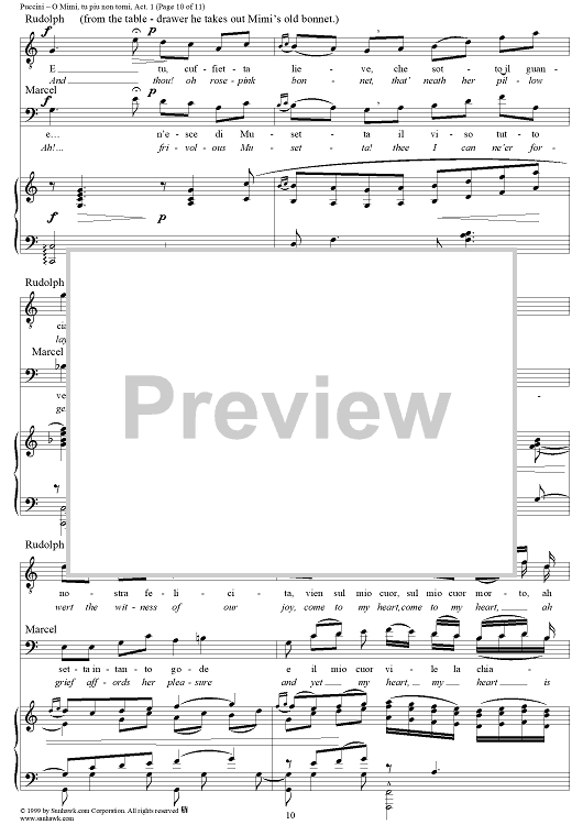 Digital Sheet Music for O Mimi, tu piu non torni by Giacomo Puccini scored for Tenor & Bariton Duet; id:254882