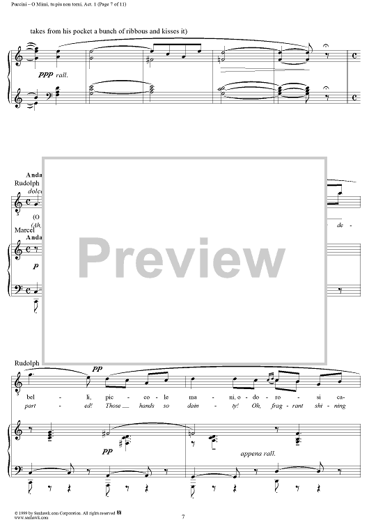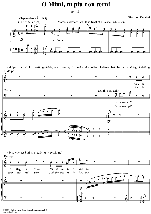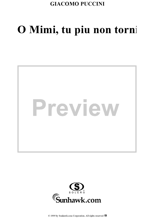 "O Mimi, tu piu non torni" Sheet Music by Giacomo Puccini