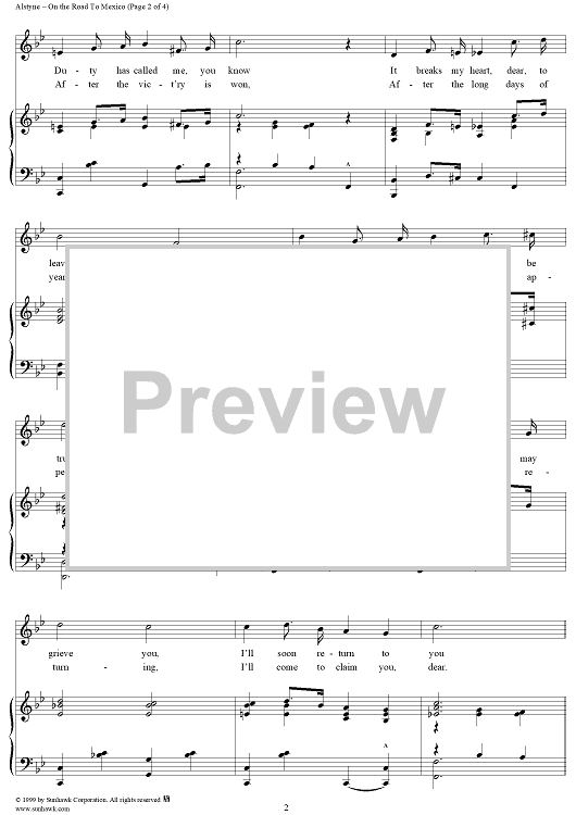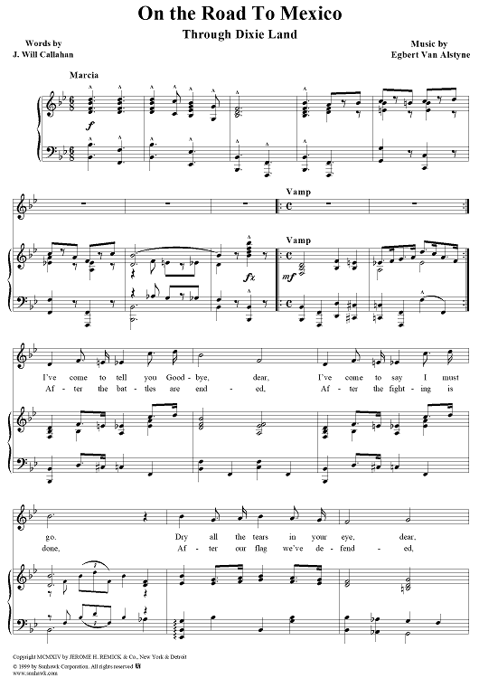 Digital Sheet Music for On the Road to Mexico by Egbert Van Alstyne scored for Piano/Vocal/Chords; id:251788