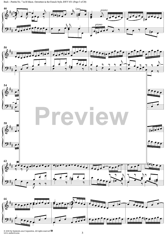 Digital Sheet Music for Overture in the French Style, BWV 831 by Johann Sebastian Bach scored for Piano Solo; id:276231