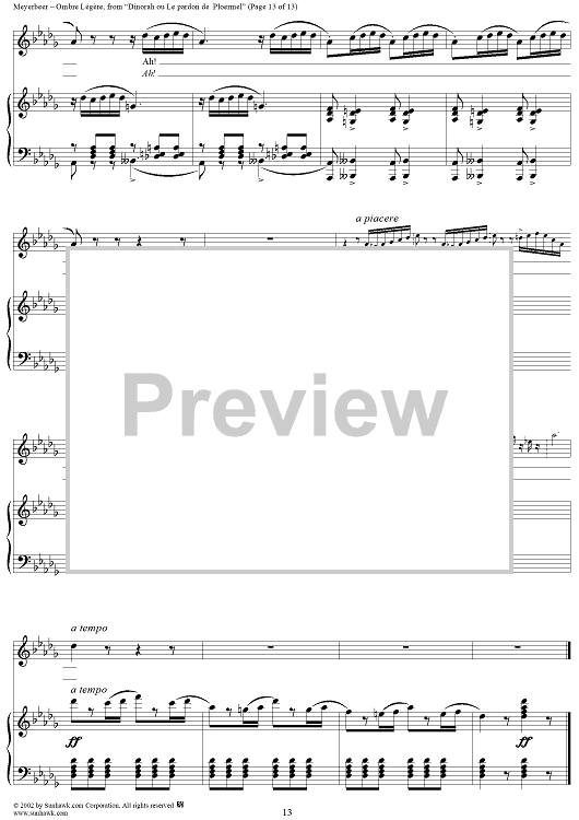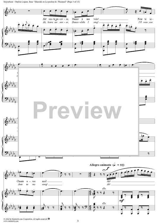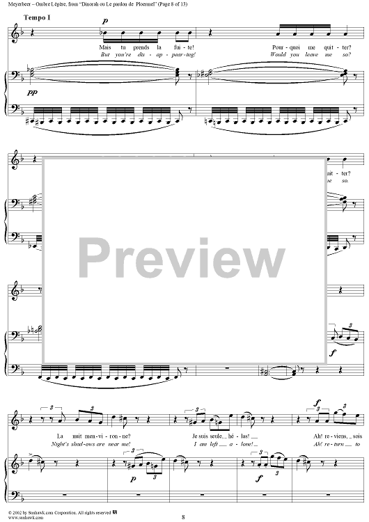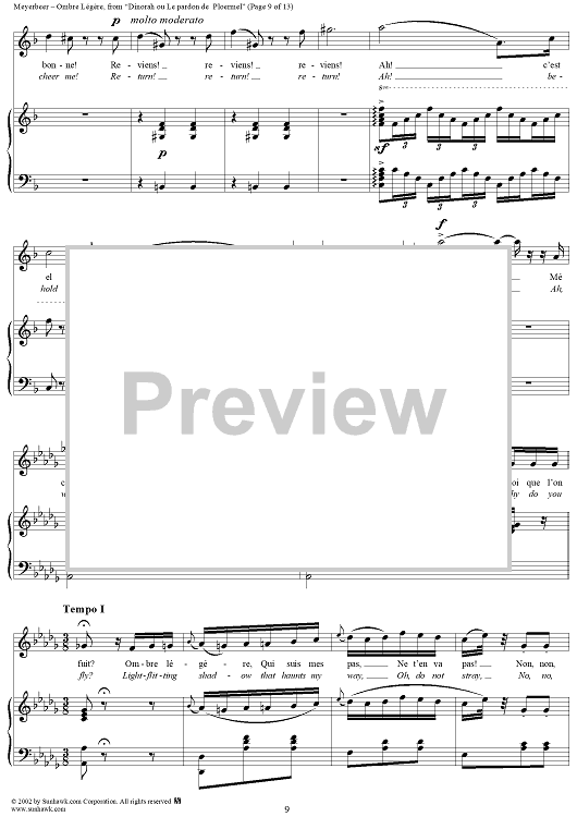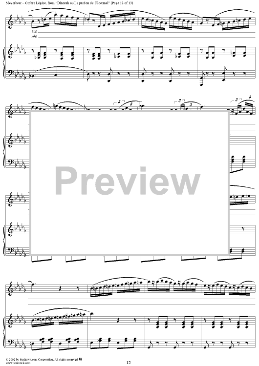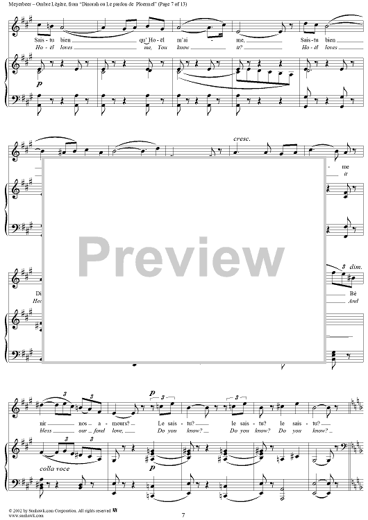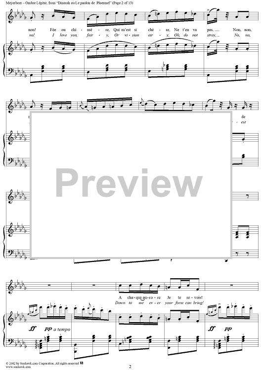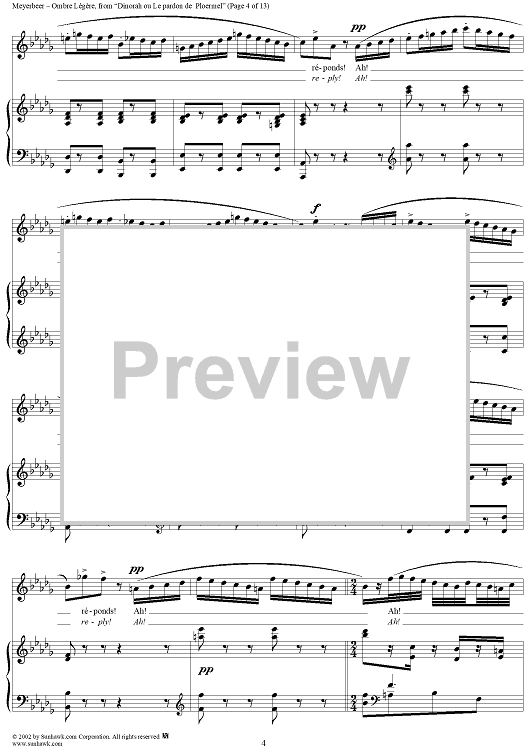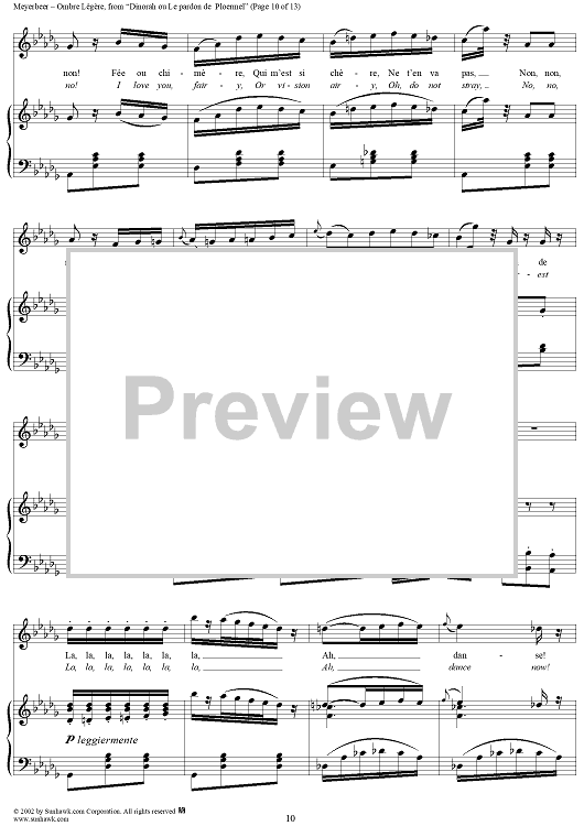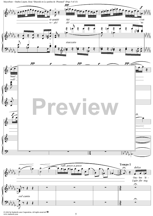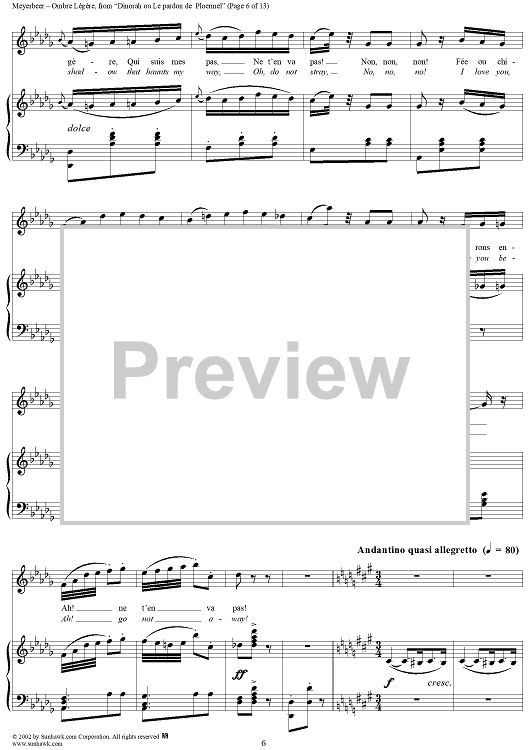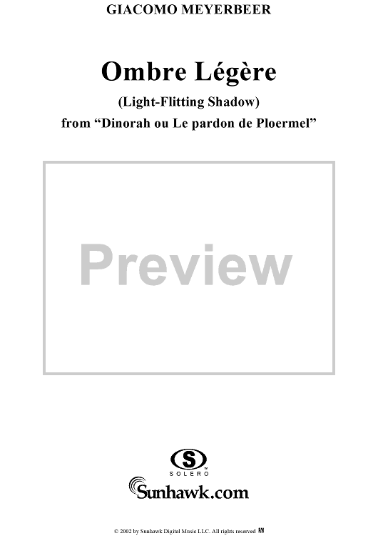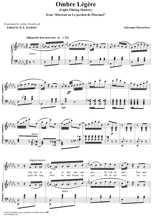 Digital Sheet Music for Pardon de Ploërmel, Ombre légère, (Light-flitting shadow) by Giacomo Meyerbeer scored for Voice/Piano; id:253853