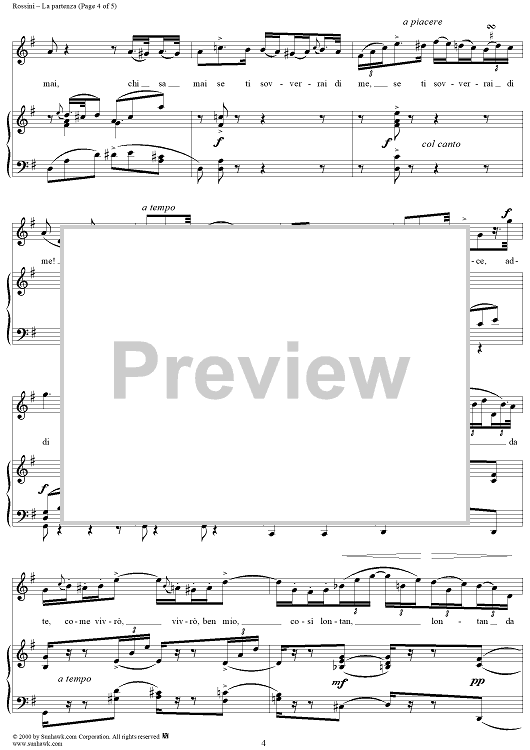 Digital Sheet Music for Partenza, La, No. 3 from "Soirées musicales" - no. 3 from "Soirées musicales" by Gioachino Rossini scored for Voice/Piano; id:255708