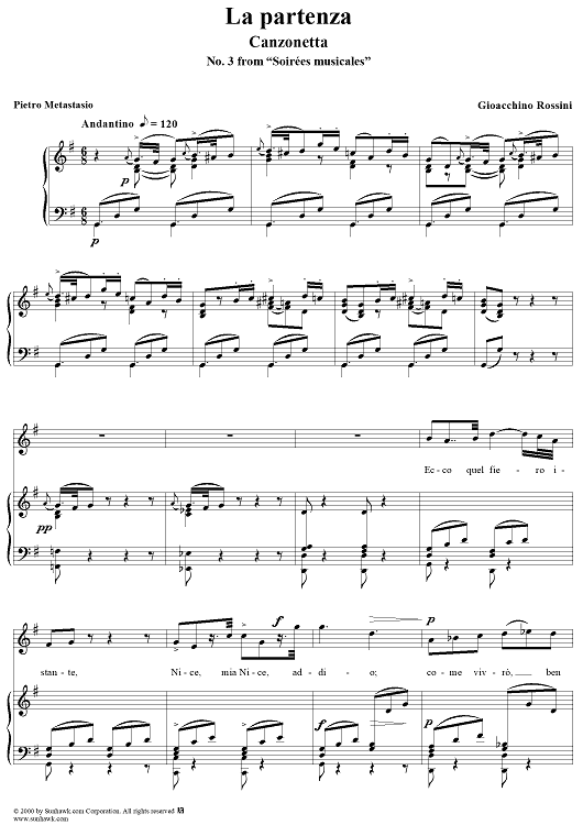 "Partenza, La, No. 3 from "Soirées musicales" - no. 3 from "Soirées musicales"" Sheet Music by Gioachino Rossini