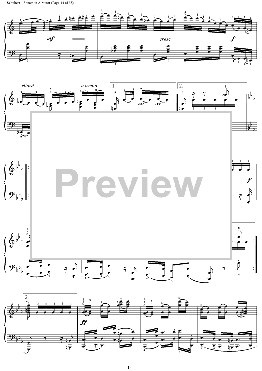Digital Sheet Music for Piano Sonata No. 16 in A minor, Op. 42, D845 by Franz Schubert scored for Piano Solo; id:257382
