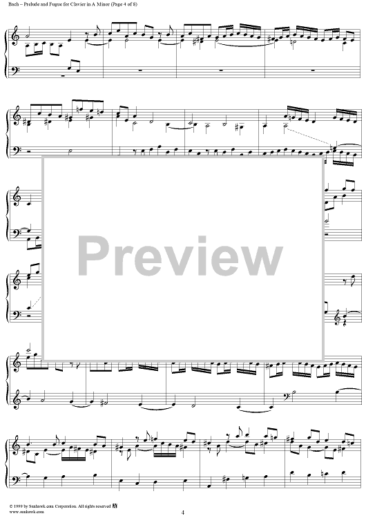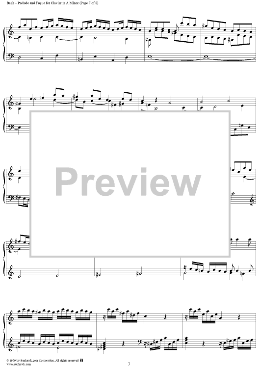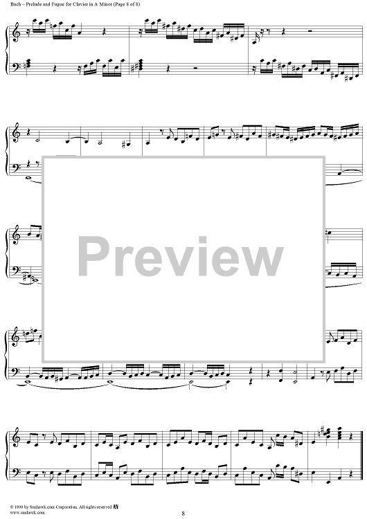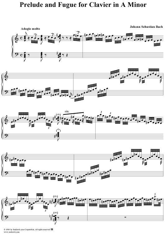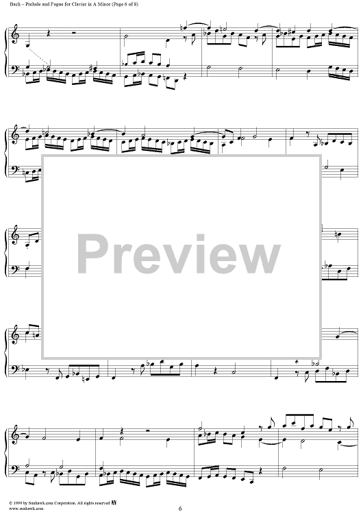Digital Sheet Music for Prelude and Fugue for Clavier (in A minor) by Johann Sebastian Bach scored for Piano Solo; id:277542