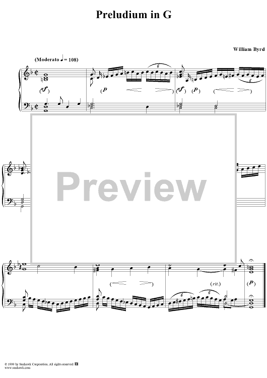 Digital Sheet Music for Preludium in G by William Byrd scored for Piano Solo; id:263318