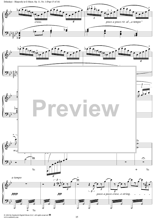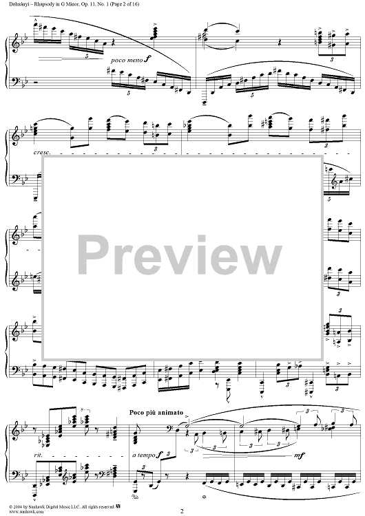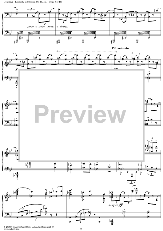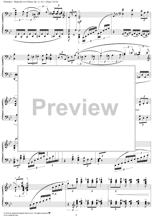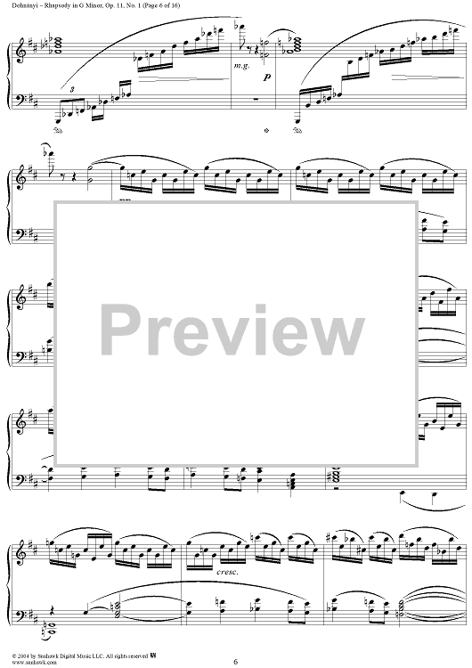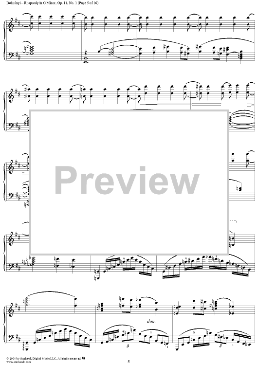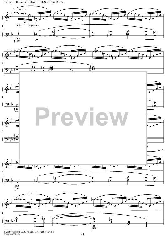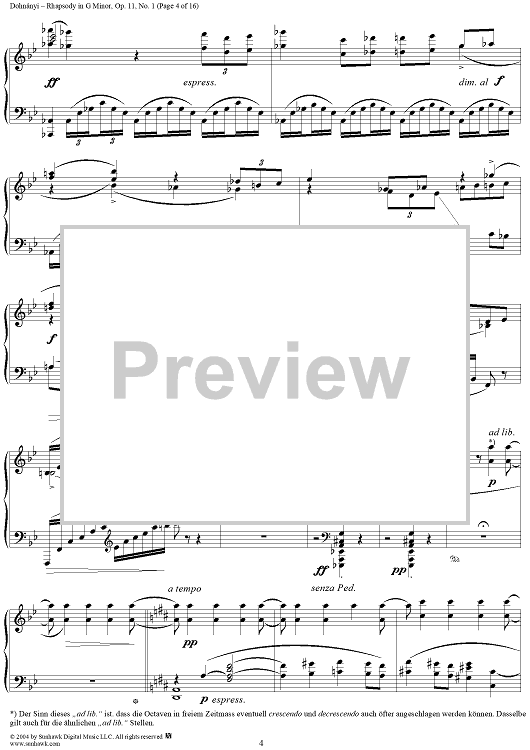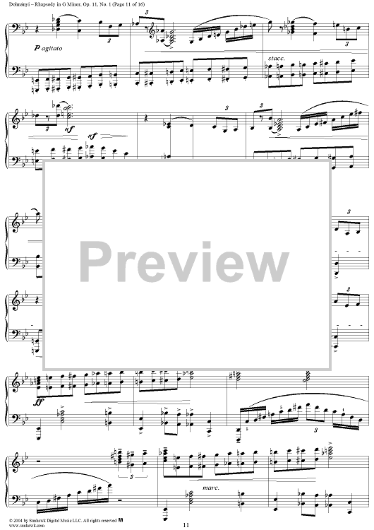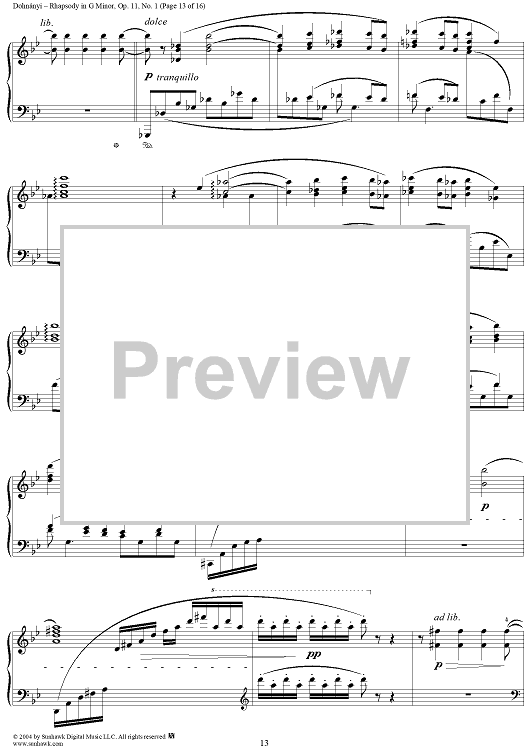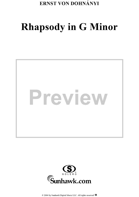 Digital Sheet Music for Rhapsody, Op. 11, No. 1 by Ernst von Dohnanyi scored for Piano Solo; id:303772