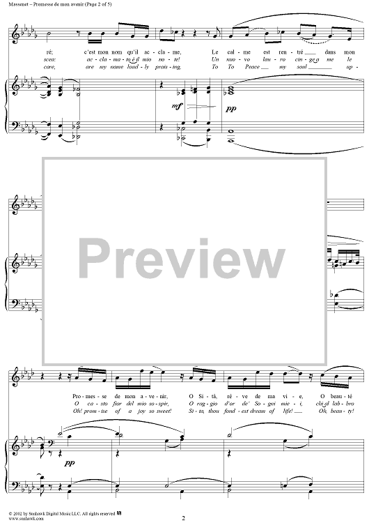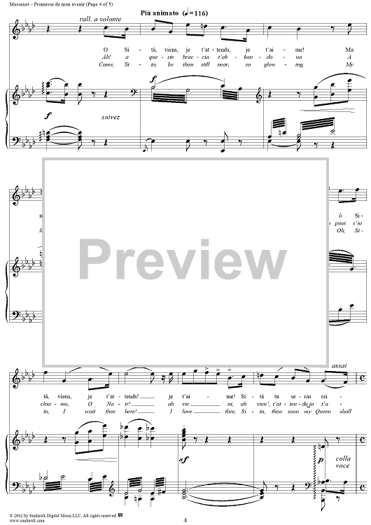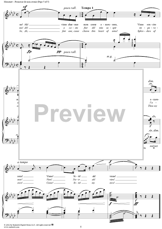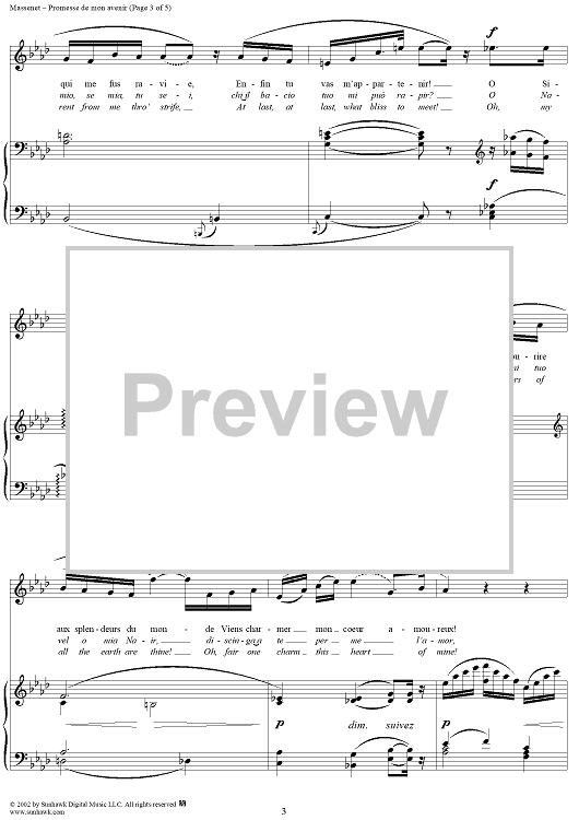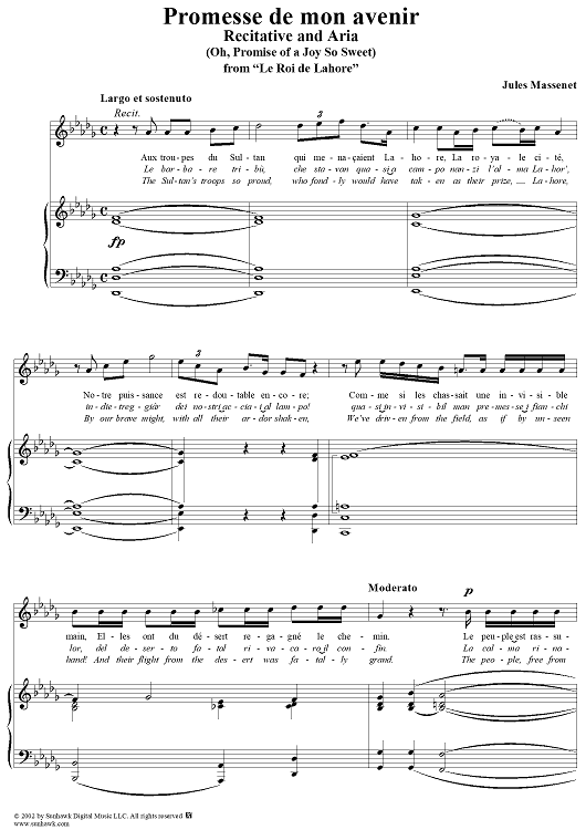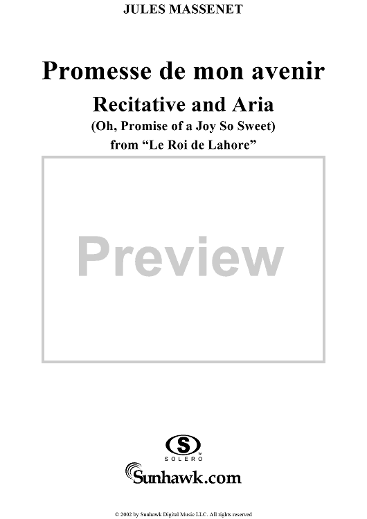 Digital Sheet Music for Roi de Lahore, "Promesse de mon avenir" (Oh, promise of a joy so sweet) by Jules Massenet scored for Voice/Piano; id:253703