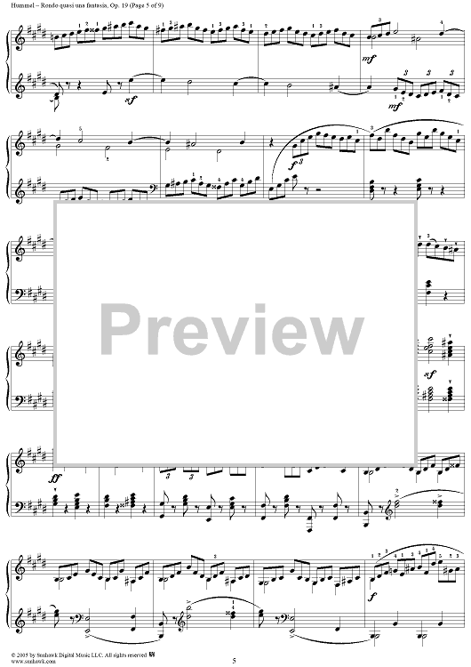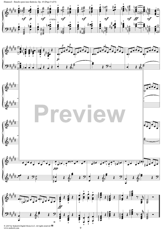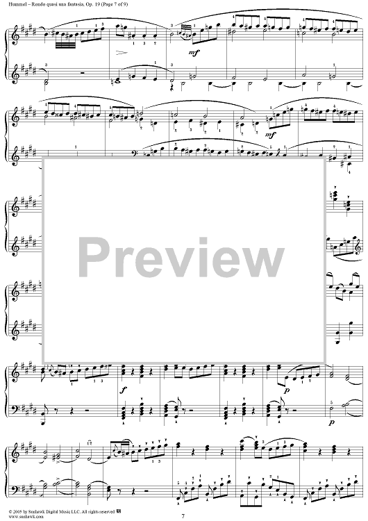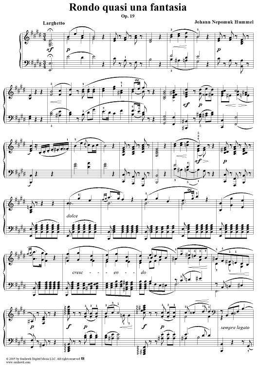 Digital Sheet Music for Rondo-Fantasie in E Major, Op. 19 by Johann Nepomuk Hummel scored for Piano Solo; id:298089