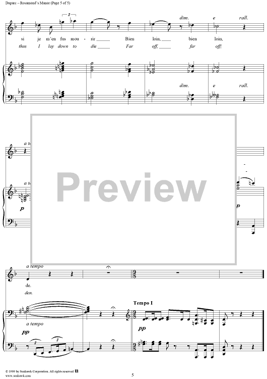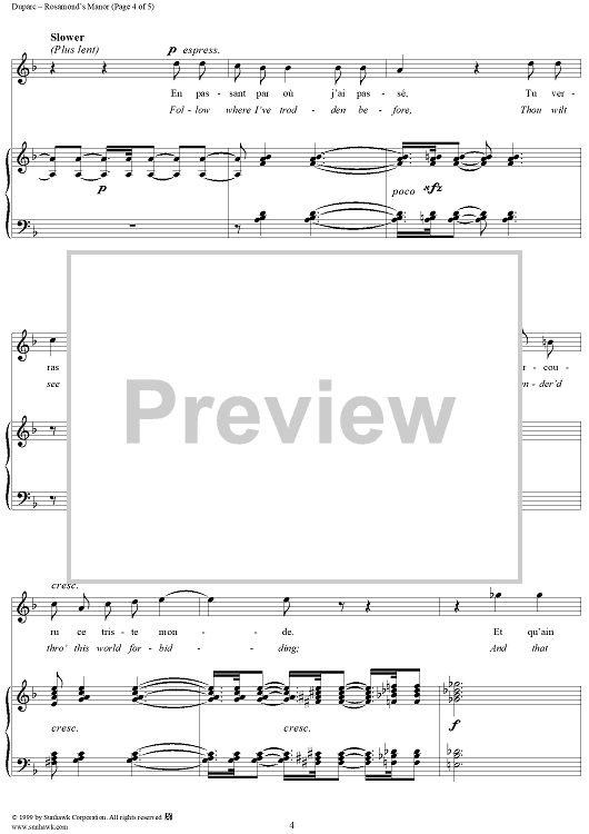 "Rosamond's Manor - (Le Manoir de Rosemonde)" Sheet Music by Henri Duparc