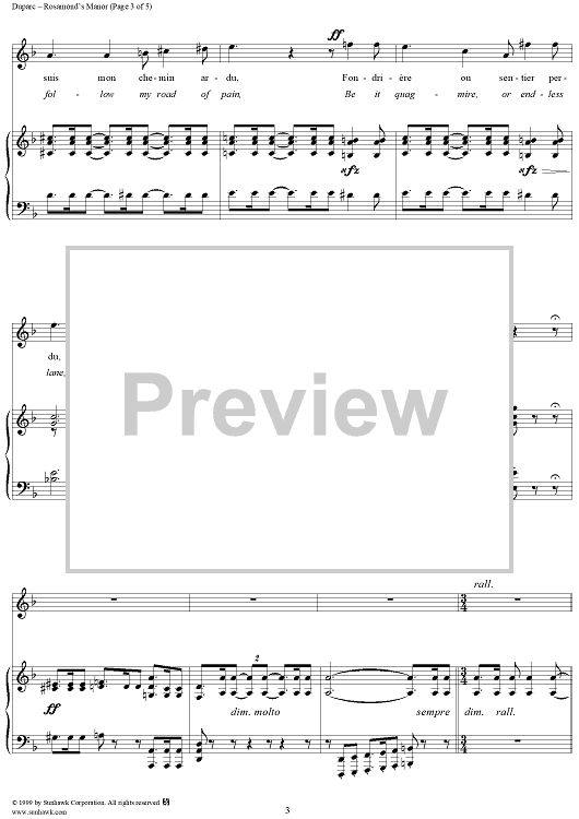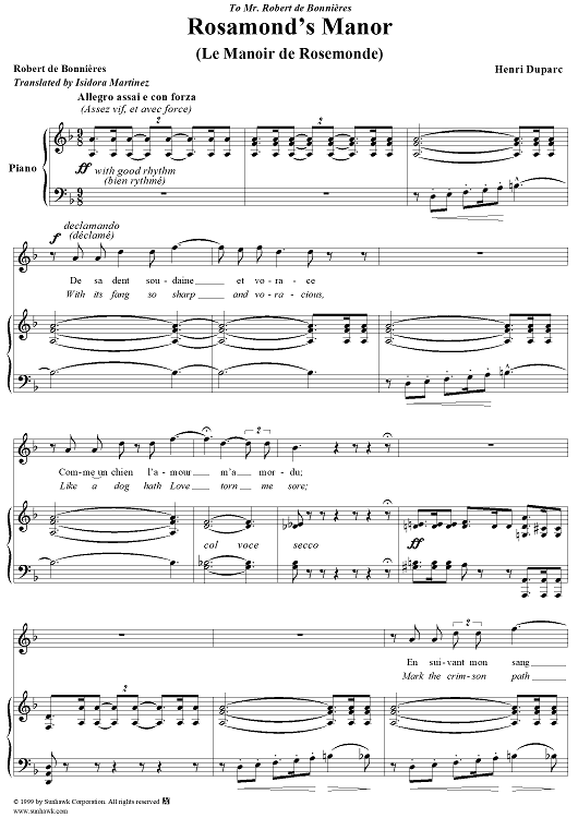 Digital Sheet Music for Rosamond's Manor - (Le Manoir de Rosemonde) by Henri Duparc, Robert de Bonnieres scored for Voice/Piano; id:269697