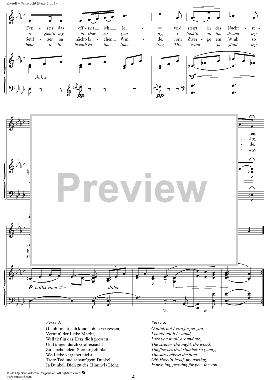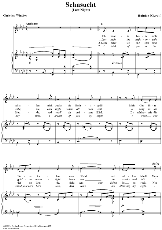 Digital Sheet Music for Sehnsucht (Last Night) by Halfdan Kjerulf scored for Voice/Piano; id:250120