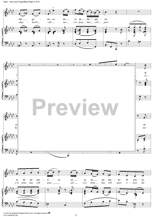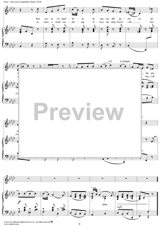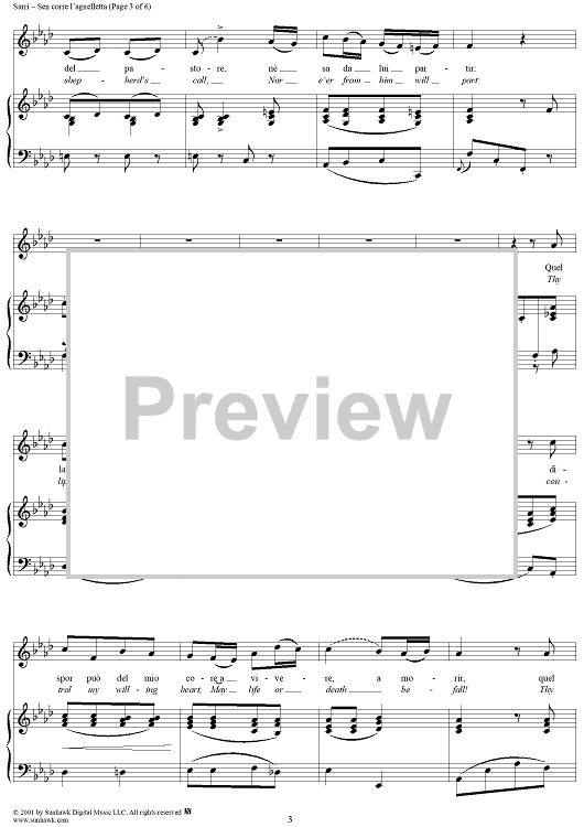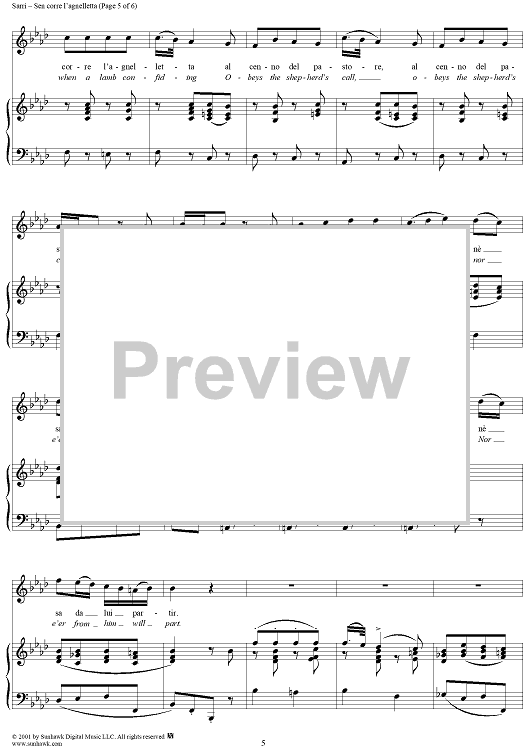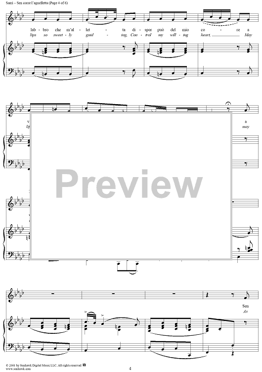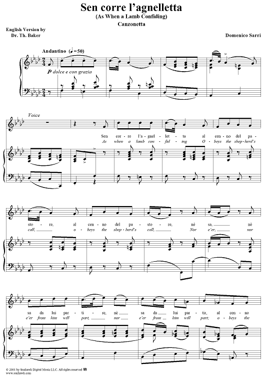 Digital Sheet Music for Sen corre l'agnelletta (As When A Lamb Confiding) by Domenico Sarro scored for Voice/Piano; id:259053