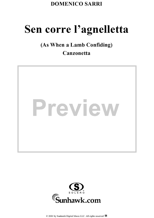 "Sen corre l'agnelletta (As When A Lamb Confiding)" Sheet Music by Domenico Sarro