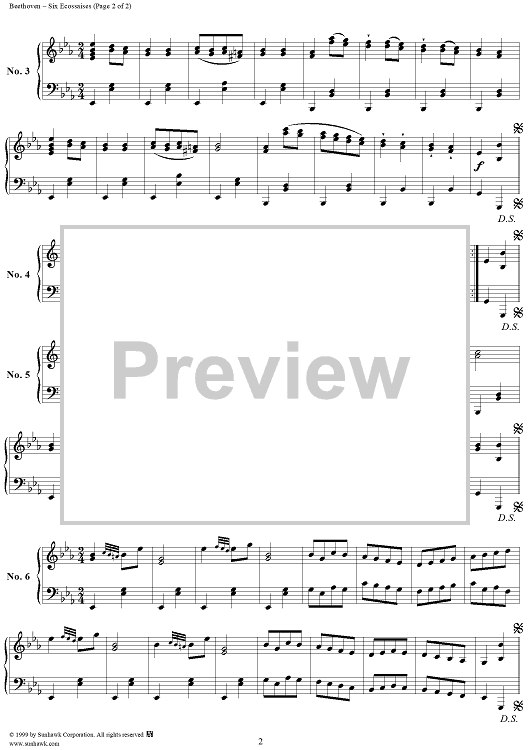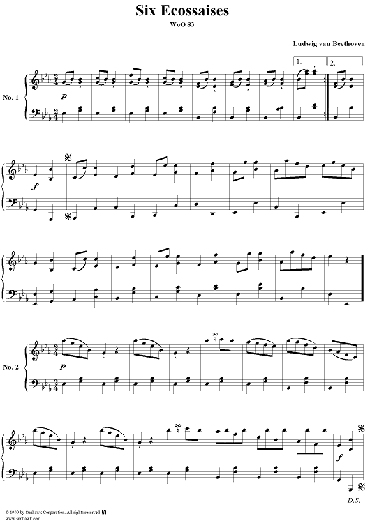 Digital Sheet Music for Six Ecossaises, WoO 83 by Ludwig van Beethoven scored for Piano Solo; id:253359