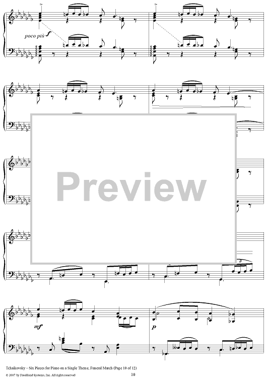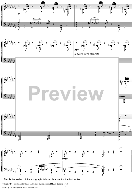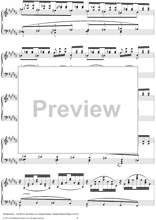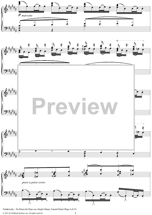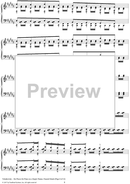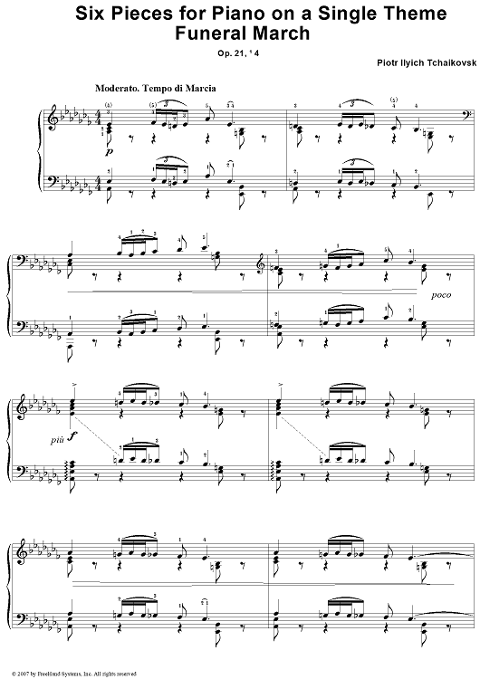 Digital Sheet Music for Six Pieces for Piano on a Single Theme. No. 4. Funeral March by Peter Ilyich Tchaikovsky scored for Piano Solo; id:364976