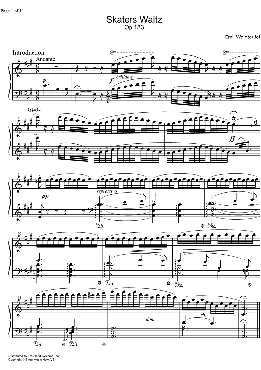 Digital Sheet Music for Skaters Waltz Op.183 by Emile Waldteufel scored for Piano Solo; id:329429