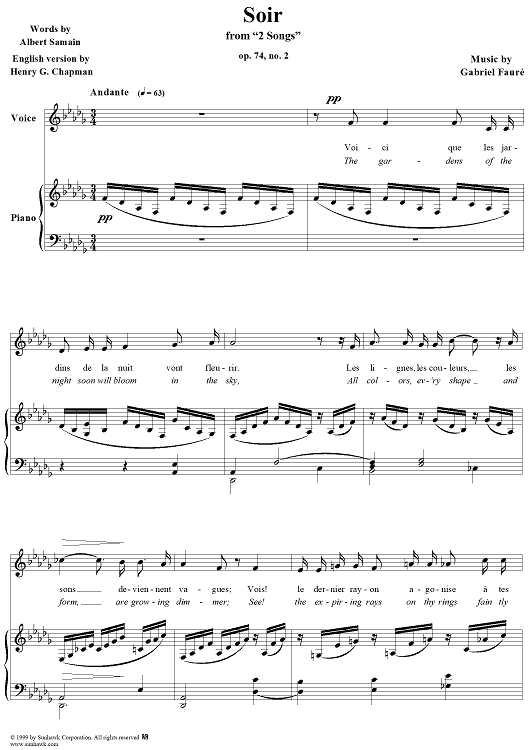 "Soir - No. 2 from "2 Songs" Op. 83" Sheet Music by Gabriel Fauré