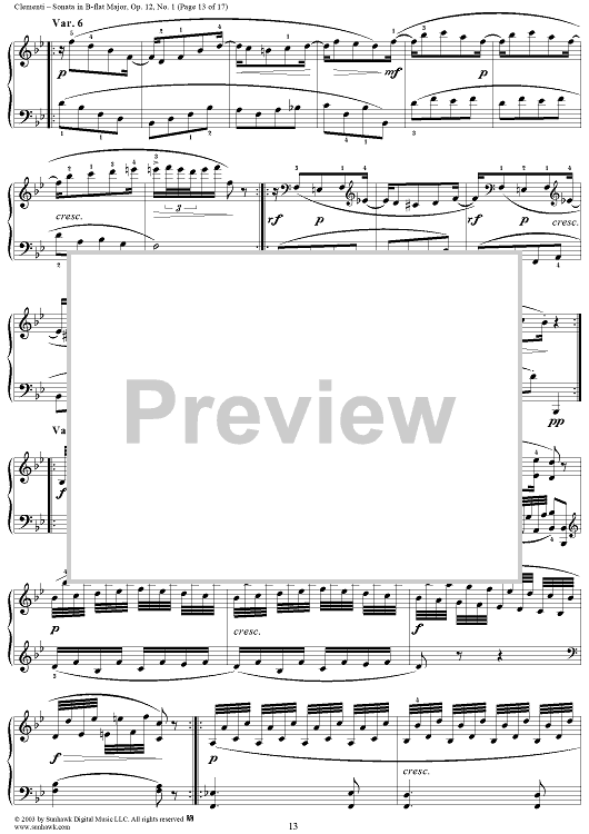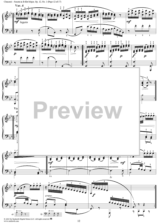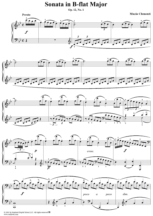 Digital Sheet Music for Sonata in B-flat Major, Op. 12, No. 1 by Muzio Clementi scored for Piano Solo; id:293735