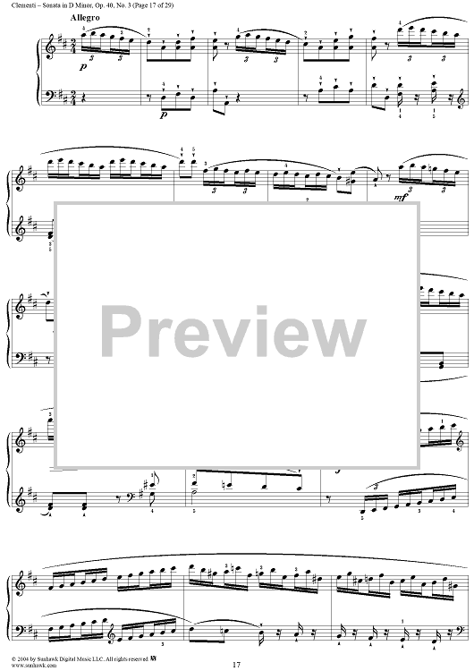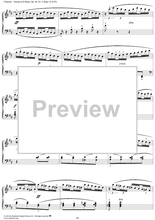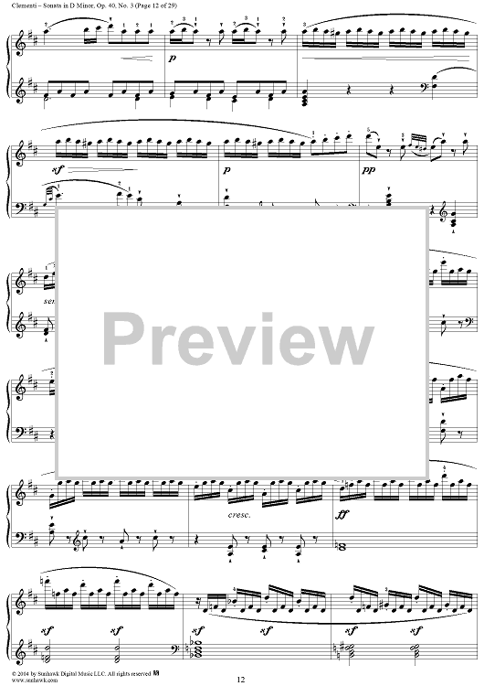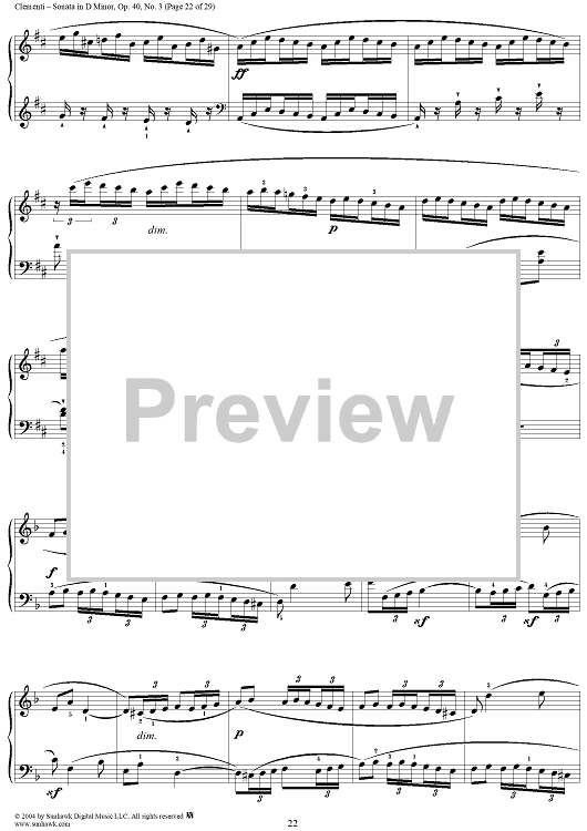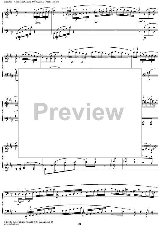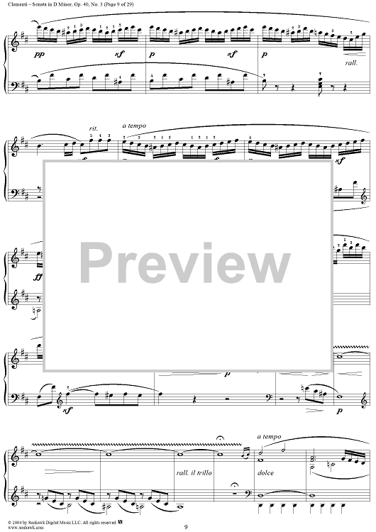Digital Sheet Music for Sonata in D Minor, Op. 40, No. 3 by Muzio Clementi scored for Piano Solo; id:295972
