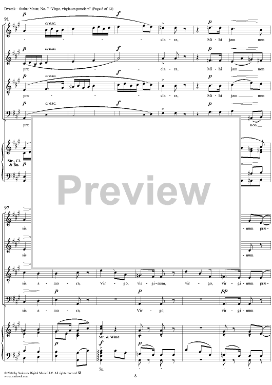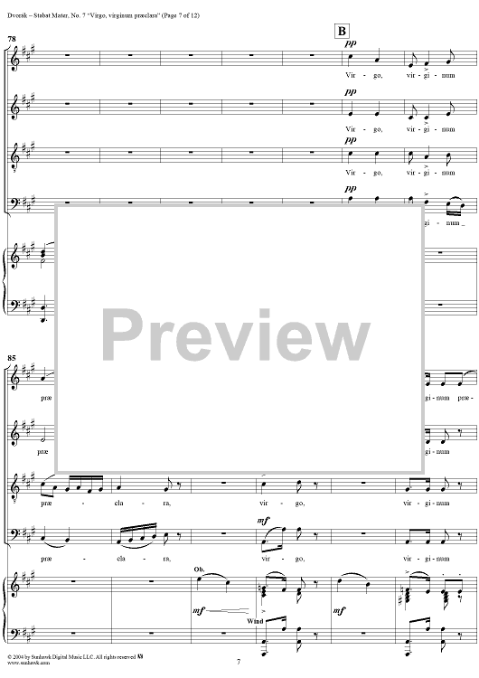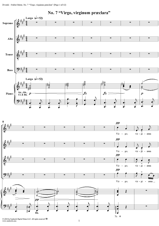 Digital Sheet Music for Stabat Mater, Op. 58: No. 7, Virgo, Virginum Præclara by Antonín Dvorák scored for Four-part Mixed Chorus/Piano; id:304734
