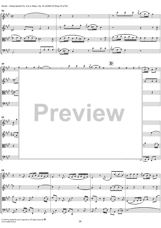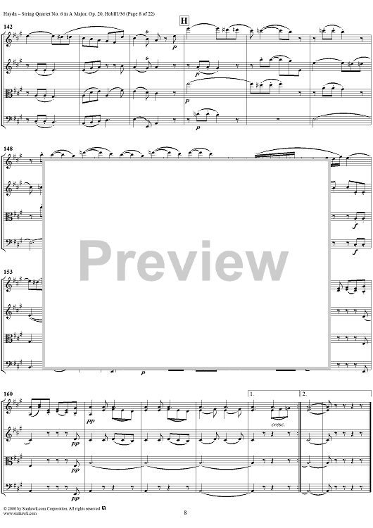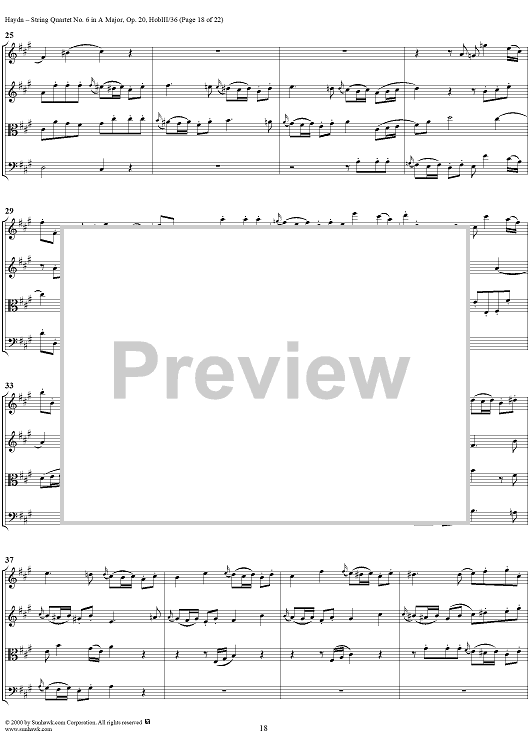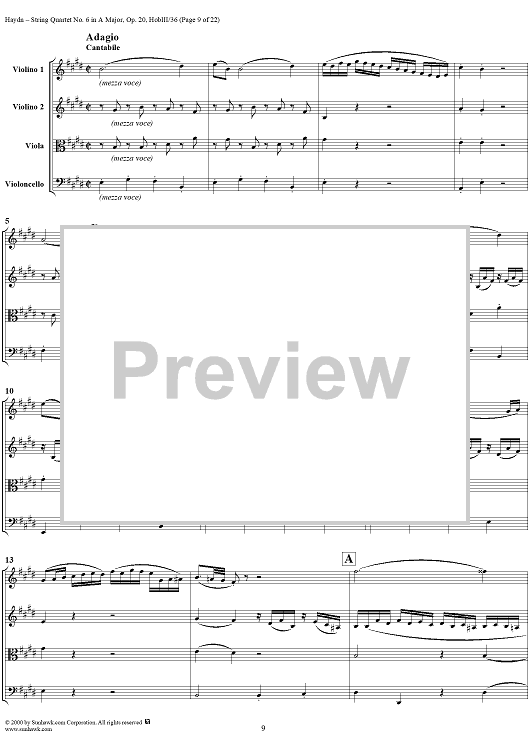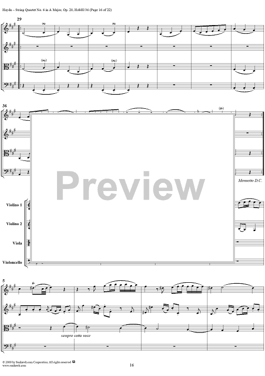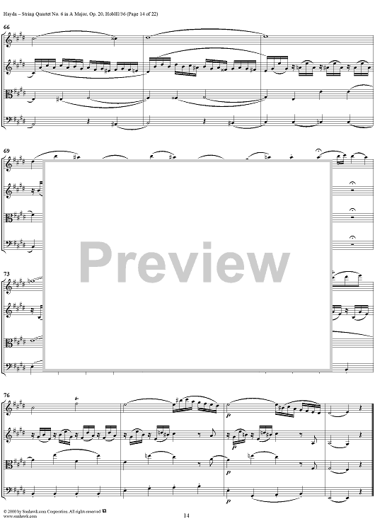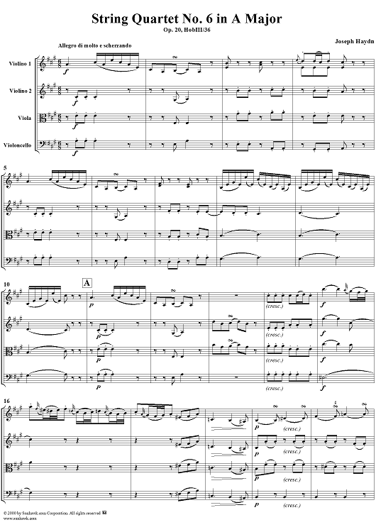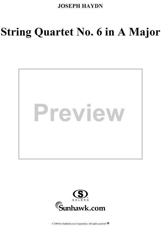 Digital Sheet Music for String Quartet in A Major, Op. 20, No. 6 - Full Score by Franz Joseph Haydn scored for String Quartet; id:241414