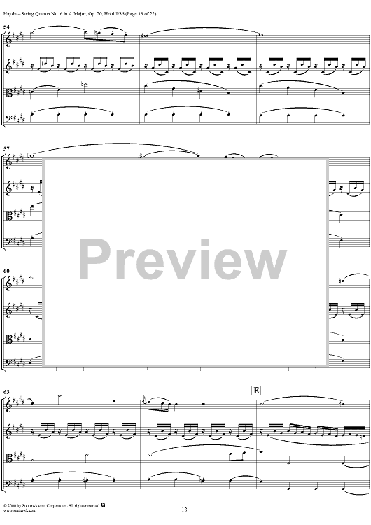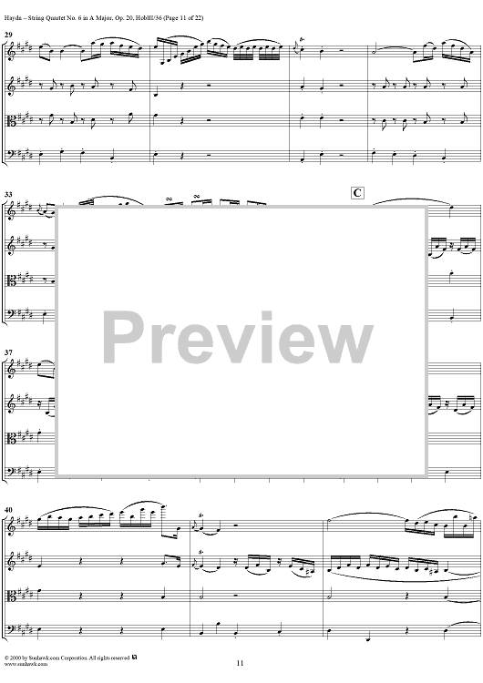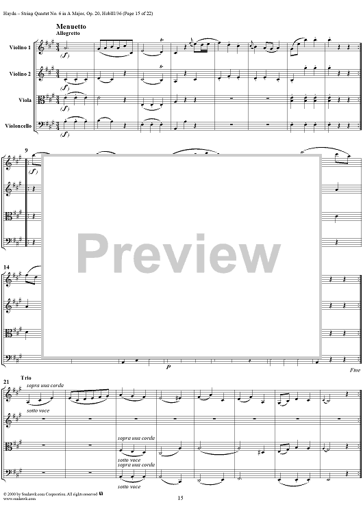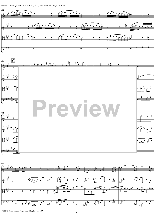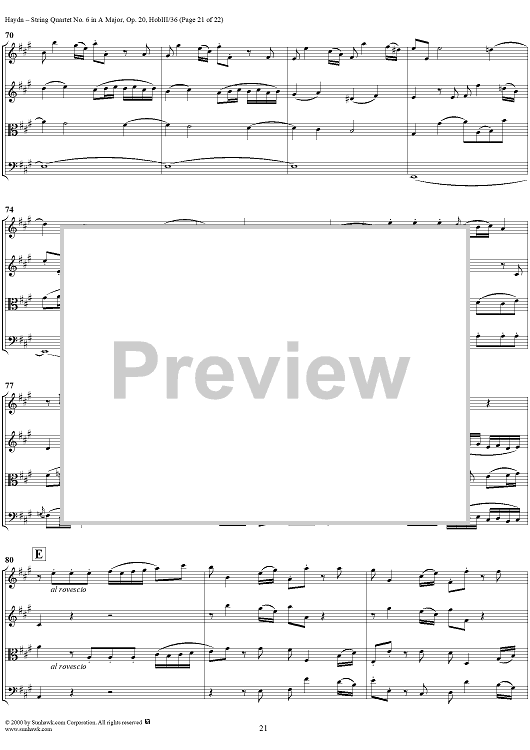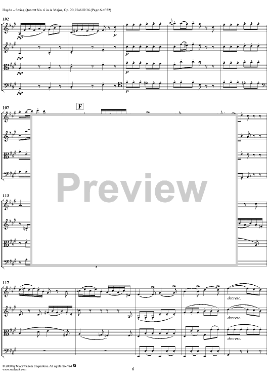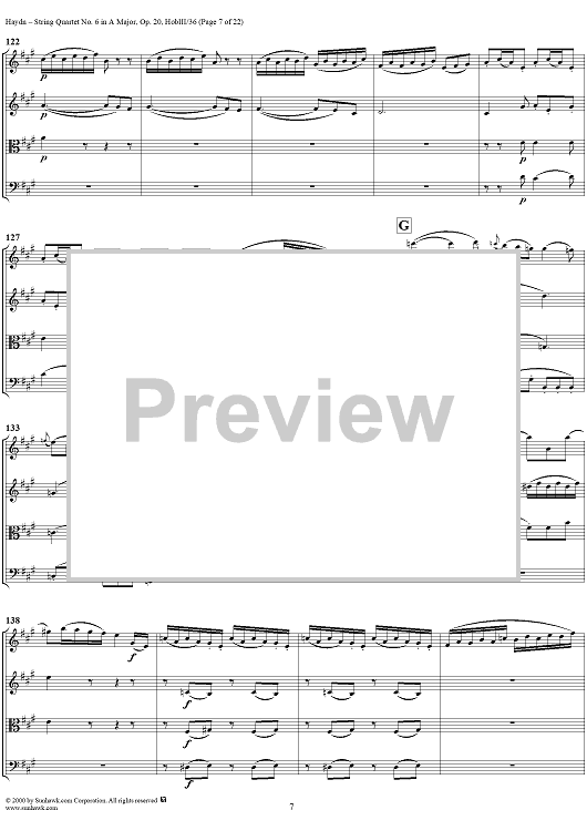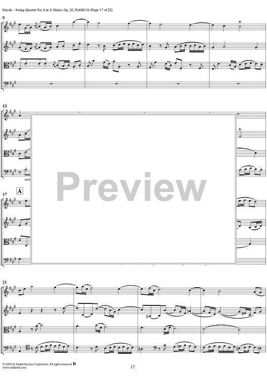 Digital Sheet Music for String Quartet in A Major, Op. 20, No. 6 - Full Score by Franz Joseph Haydn scored for String Quartet; id:241414