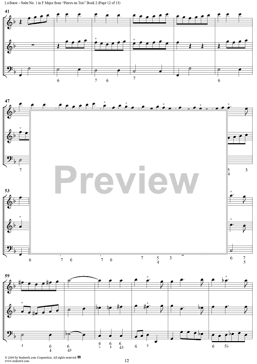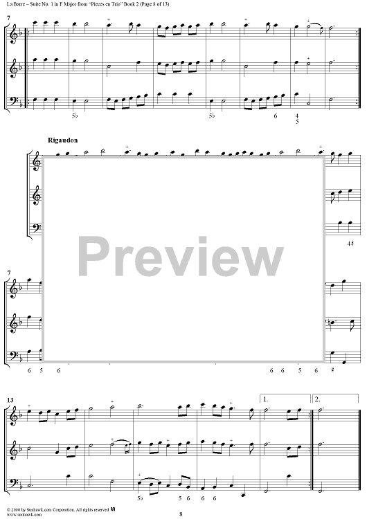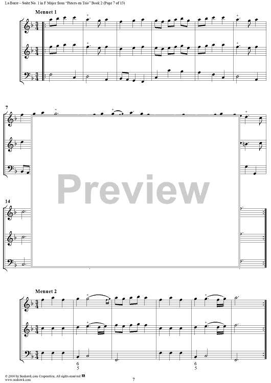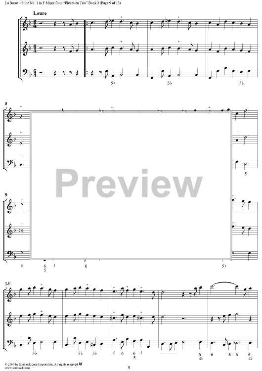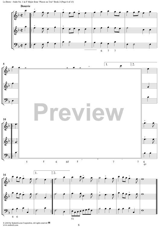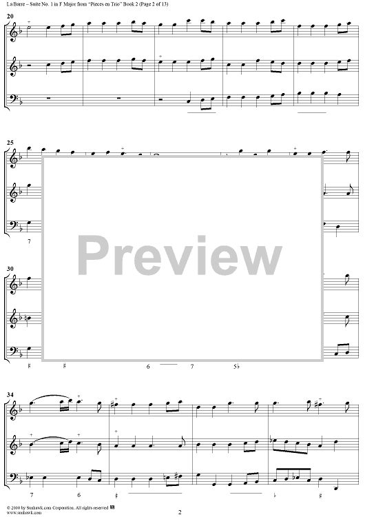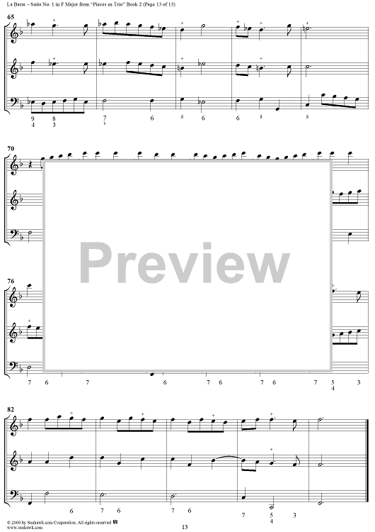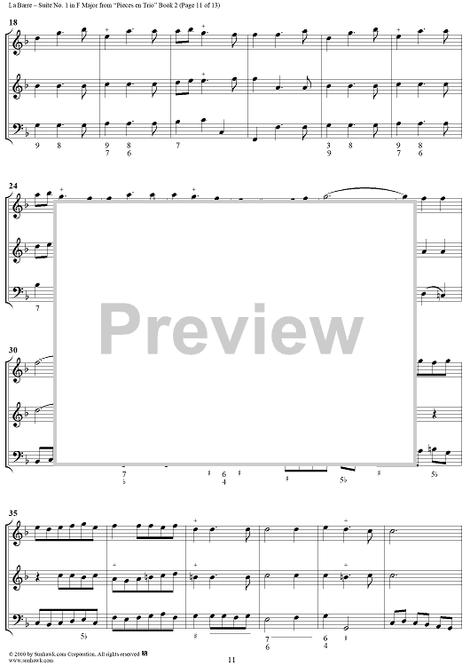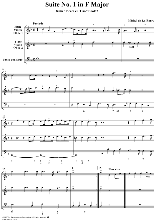 Digital Sheet Music for Suite No. 1 in F Major - From "Pieces en Trio" Book 2 - Score by Michel de la Barre scored for Trio (Fl/Vln/Ob and Basso continuo); id:276566