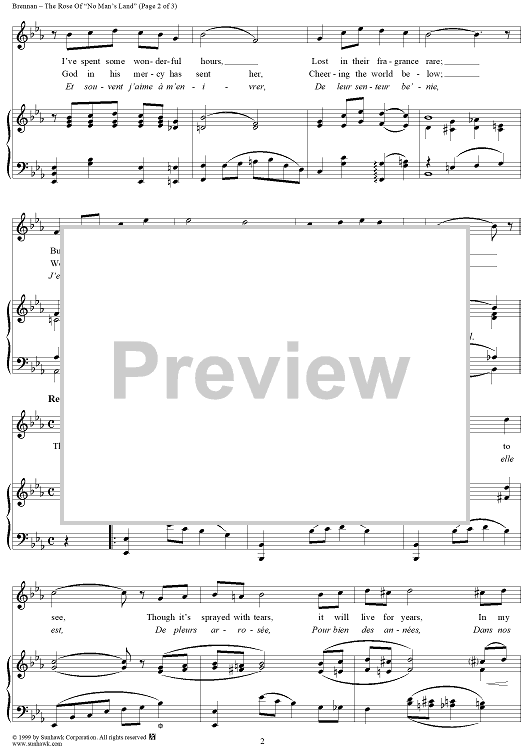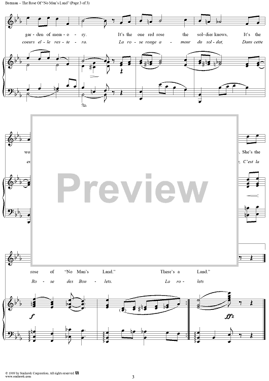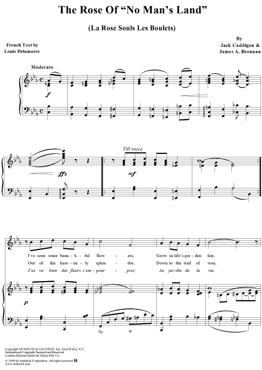 Digital Sheet Music for The Rose of "No Man's Land" by James A. Brennan, Jack Caddigan scored for Voice/Piano; id:267426