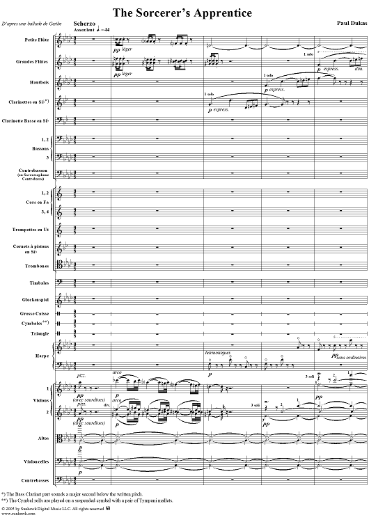 Digital Sheet Music for The Sorcerer's Apprentice by Paul Dukas scored for Orchestra; id:311218