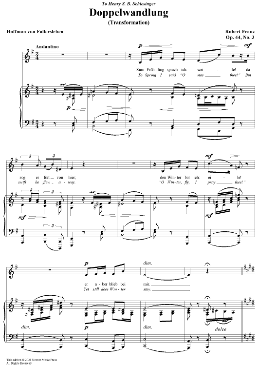 Digital Sheet Music for Transformation (Doppelwandlung) by Robert Franz scored for Voice/Piano; id:469005