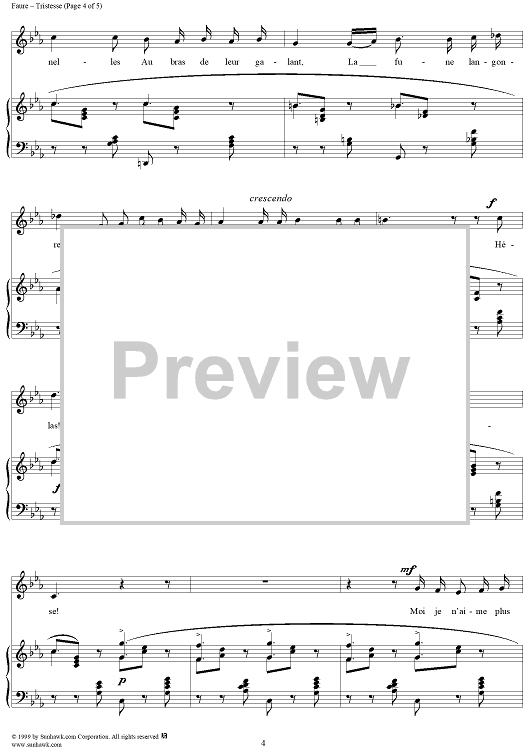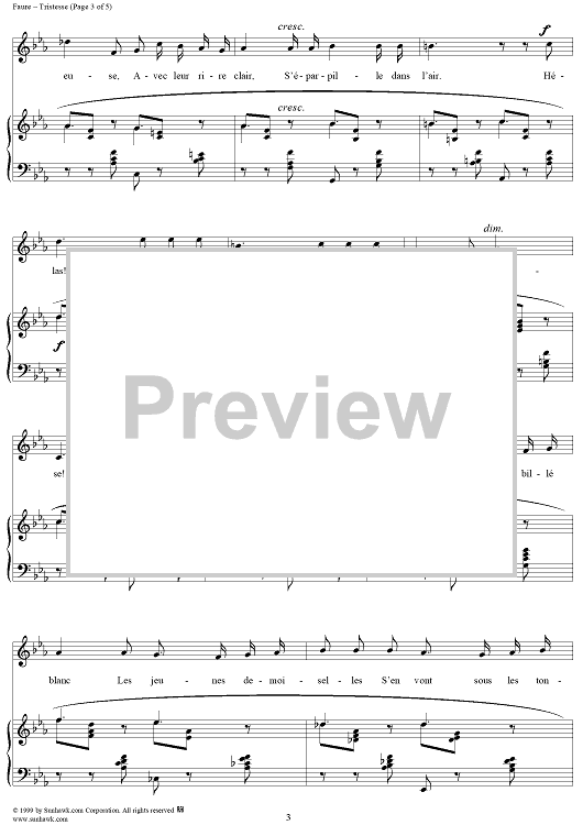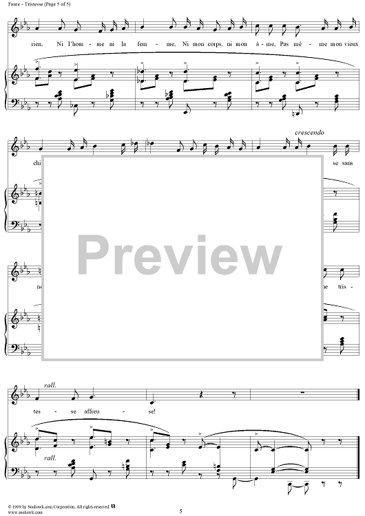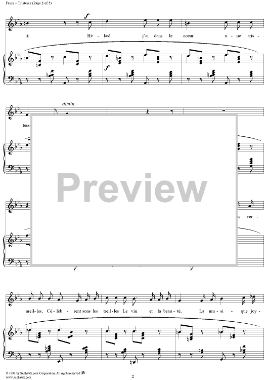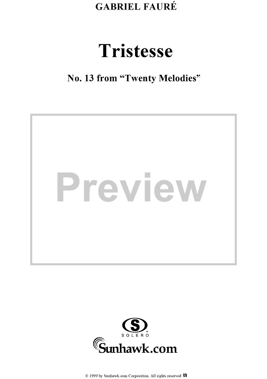Digital Sheet Music for Tristesse - Op. 6, No. 2 by Gabriel Fauré, Théophile Gautier scored for Voice/Piano; id:270104