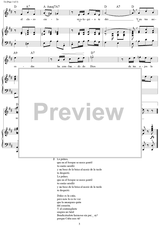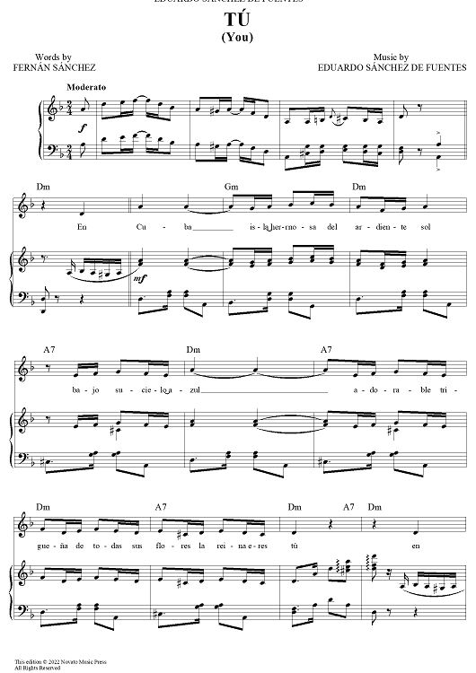 Digital Sheet Music for Tú (You) by Eduardo Sanchez de Fuentes, Fernan Sanchez scored for Piano/Vocal/Chords; id:269205