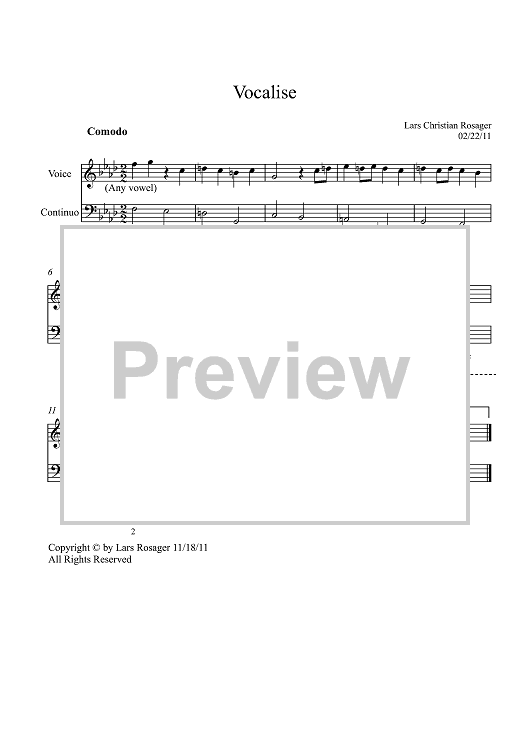 Digital Sheet Music for Vocalise by Lars Rosager scored for Voice and Continuo; id:429487