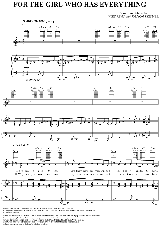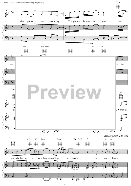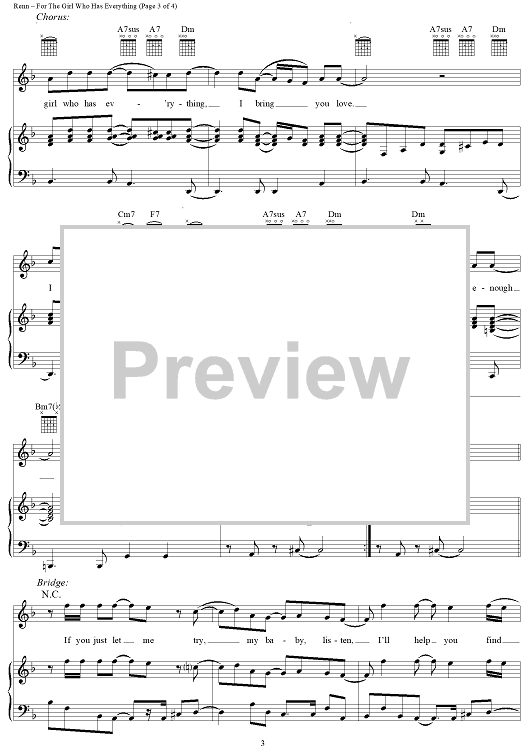 Digital Sheet Music for For the Girl Who Has Everything by Veit Renn, Jolyon Skinner, *Nsync scored for Piano/Vocal/Chords; id:114210