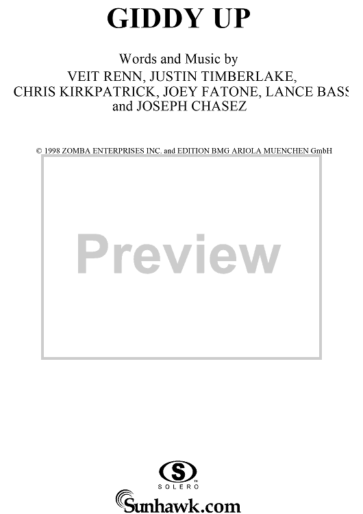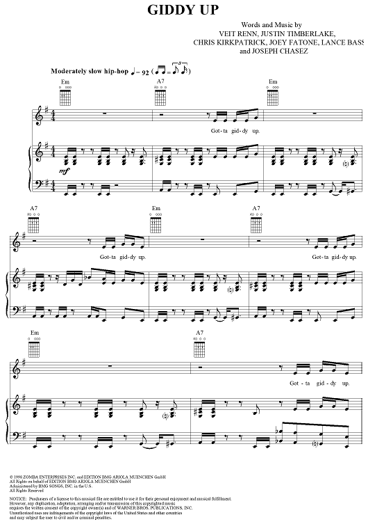 Digital Sheet Music for Giddy Up by Veit Renn, Chris Kirkpatrick, Joey Fatone, Lance Bass, *Nsync, JC Chasez, Justin Timberlake scored for Piano/Vocal/Chords; id:115972