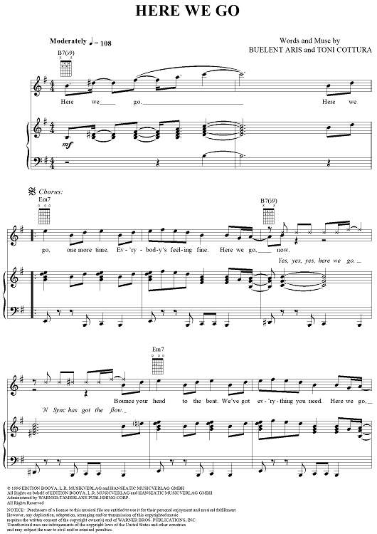 Digital Sheet Music for Here We Go by Buelent Aris, Toni Cottura, *Nsync scored for Piano/Vocal/Chords; id:114134