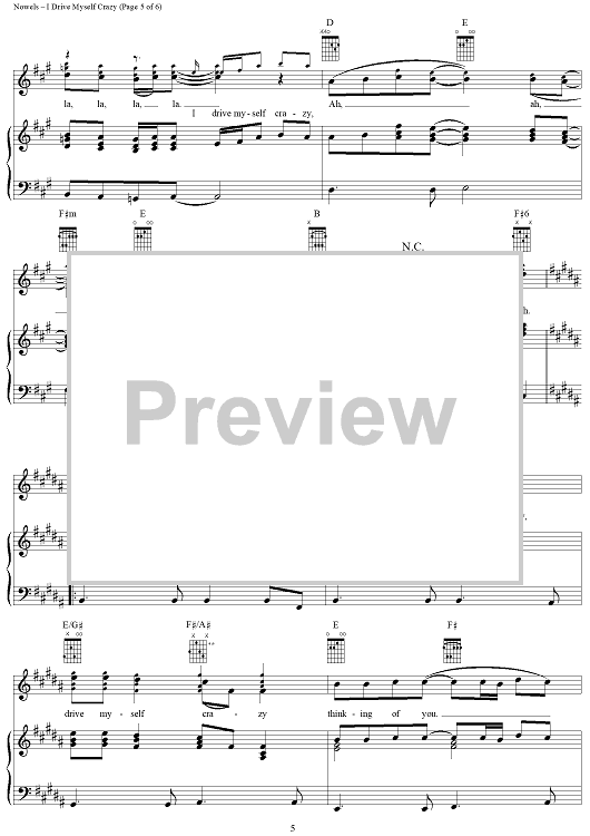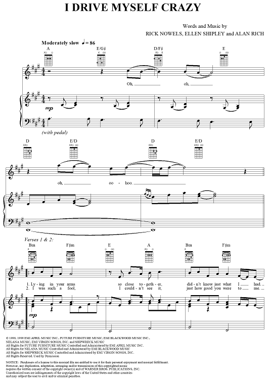 Digital Sheet Music for I Drive Myself Crazy by Rick Nowels, Ellen Shipley, Alan Rich, *Nsync scored for Piano/Vocal/Chords; id:253376