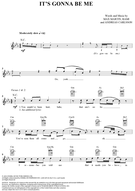 "It's Gonna Be Me" Sheet Music by *Nsync