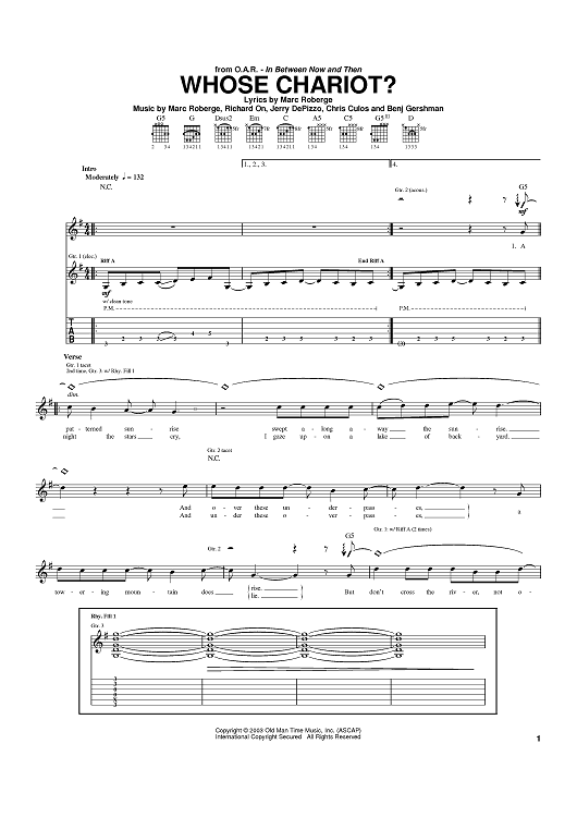 Digital Sheet Music for Whose Chariot? by Chris Culos, Jerry DePizzo, Benj Gershman, O.A.R., Richard On, Marc Roberge scored for Guitar Tab; id:390266