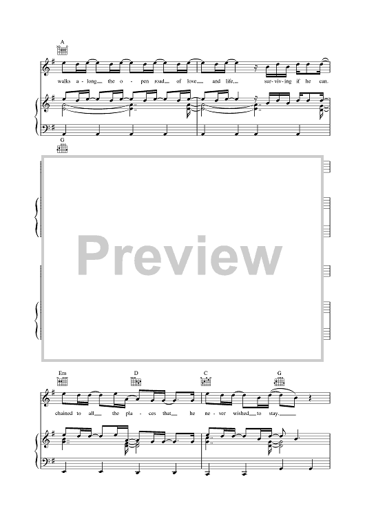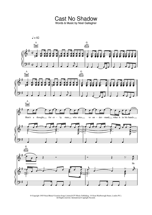 Digital Sheet Music for Cast No Shadow by Oasis scored for Piano/Vocal/Chords; id:376043