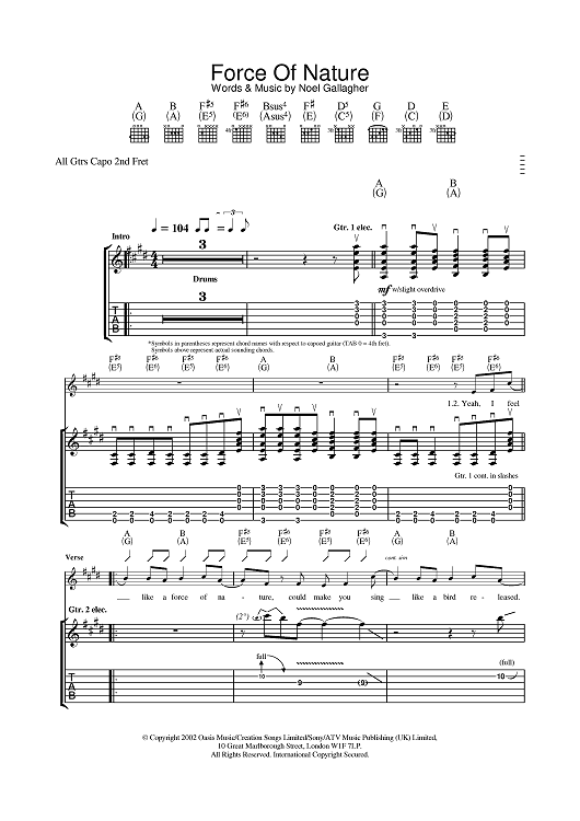 Digital Sheet Music for Force Of Nature by Oasis scored for Guitar Tab; id:377631