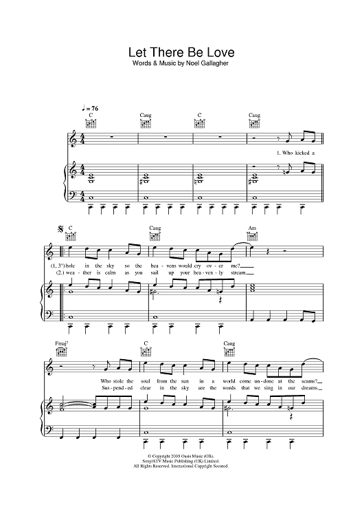 Digital Sheet Music for Let There Be Love by Noel Gallagher, Oasis scored for Piano/Vocal/Chords; id:387462