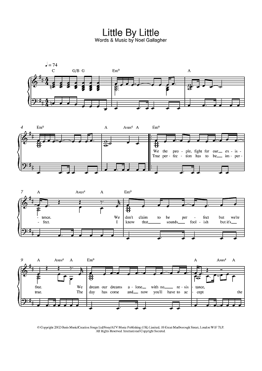 Digital Sheet Music for Little By Little by Oasis scored for Piano; id:377638