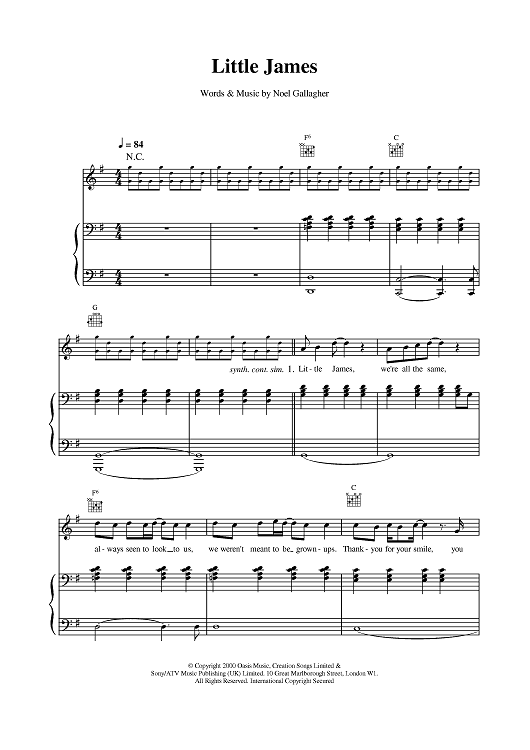 Digital Sheet Music for Little James by Oasis scored for Piano/Vocal/Chords; id:377034