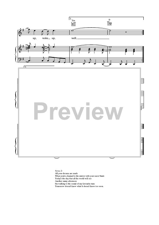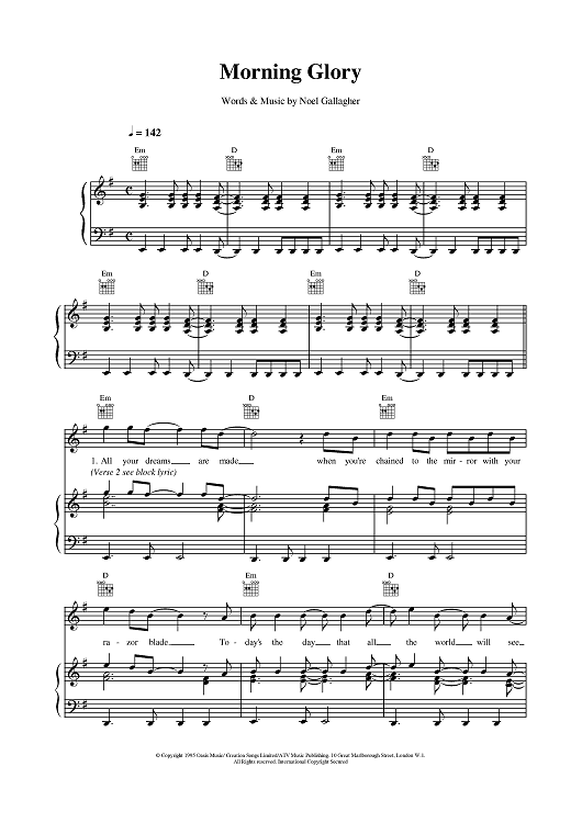 Digital Sheet Music for Morning Glory by Noel Gallagher, Oasis scored for Piano/Vocal/Chords; id:376044