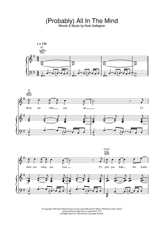 Digital Sheet Music for (Probably) All In The Mind by Oasis scored for Piano/Vocal/Chords; id:377642
